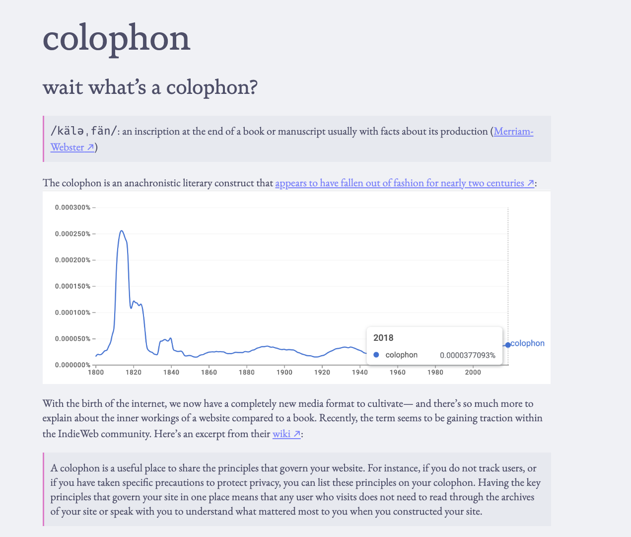 The purpose of my website has evolved over time: first as purely a playground; then as a portfolio; and most recently, as a vessel for my blog.