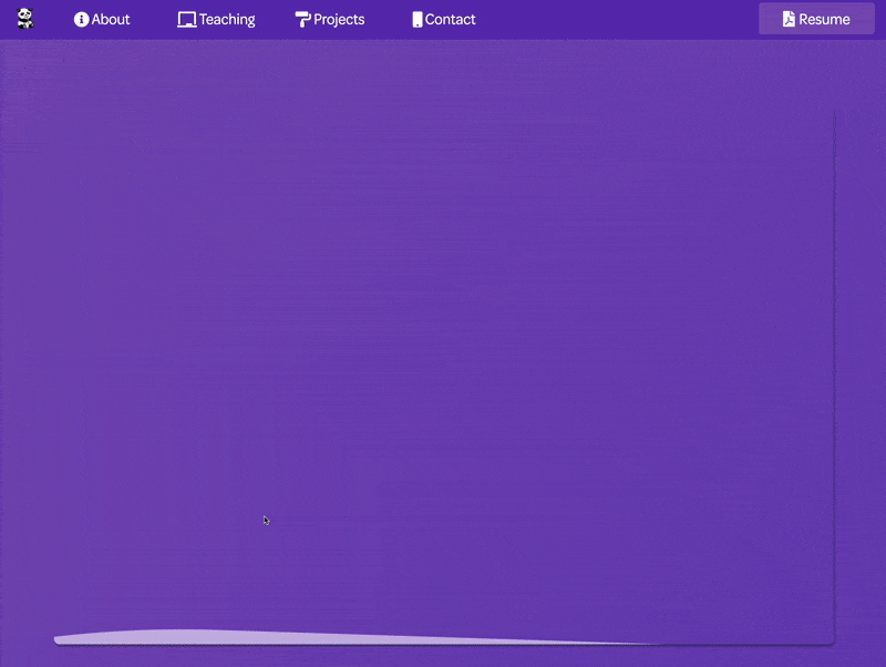 This year’s design was a step back from the flashy animations and colorful highlights. I carried out the design process with the intention of creating a site that’s snappy, simple, and easy to build upon in future iterations. This was around the point where I started adopting the “let my work speak for itself” ideal.