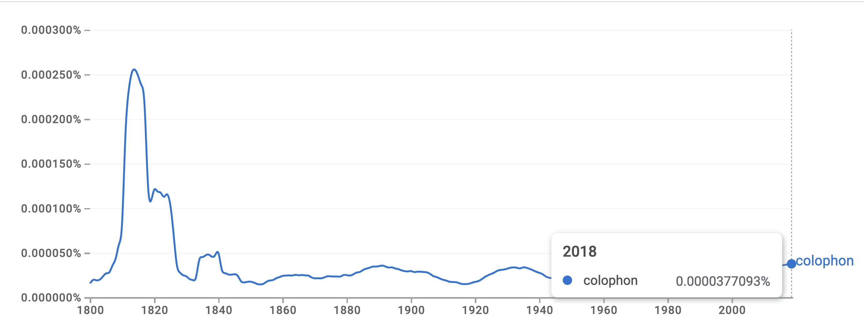 The colophon is an anachronistic literary construct that appears to have fallen out of fashion for nearly two centuries: