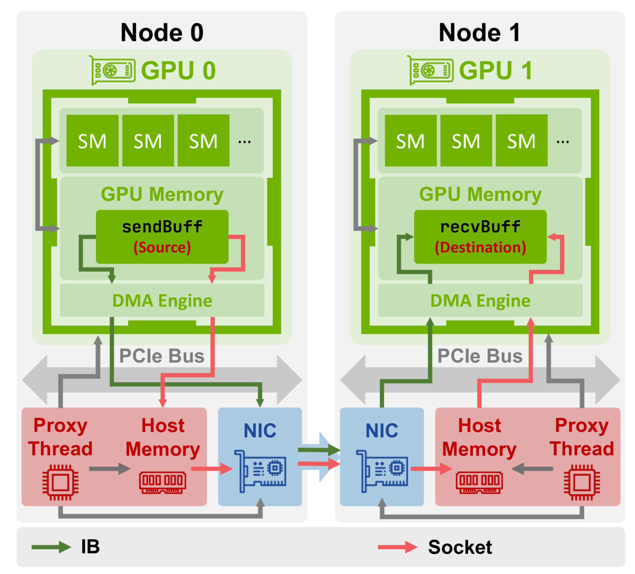 How GPUs on different nodes communicate with each other.