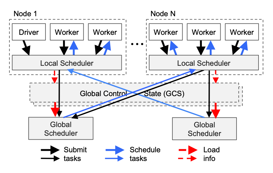 - Ray, like many SOTA systems, feels obvious in hindsight- there isn’t any one crazy new innovation. Rather, there are a few key architecture decisions (GCS, the node/actor/worker abstractions, the local/global schedulers…) that all come together to make one platform that works far better than any existing solution.